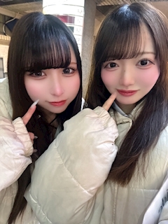 こんばんはのあです𖤐 ̖́- 外で一緒に凍えてるりおんちゃんと写真撮った😚💖 さいきんたくさん会えてる♡ し、帰る駅が同じだからいつもふたりで終電ダッシュチャレンジしてるよ笑 のあだけがりおんちゃんの走る姿を見ています😏😏 ひさしぶりにゆづらなも一緒にお外いるから かわいい子勢ぞろいしてます❕❕ ぜひ会いに来てね〜ん ではでは またねん